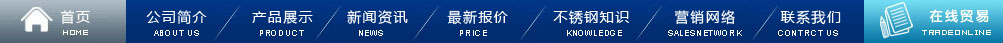 首頁(yè) | 公司簡(jiǎn)介| 產(chǎn)品展示 | 新聞資訊 | 最新報(bào)價(jià) | 不銹鋼知識(shí) | 營(yíng)銷(xiāo)網(wǎng)絡(luò) | 在線留言 | 聯(lián)系我們